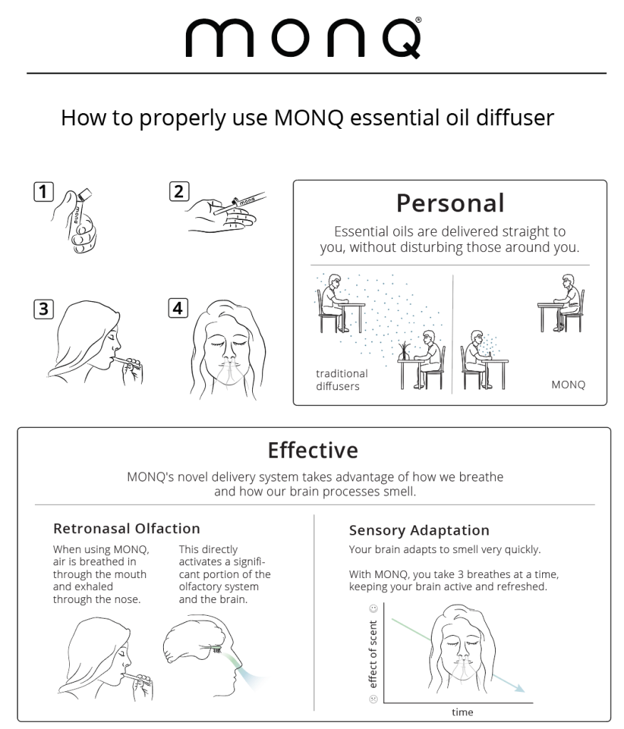 When using with an AirTip, you gently squeeze the AirTip and the fragrance molecules exit from the hole at the tip of the device and experience the fragrance in the olfactory bulb.
