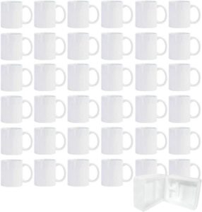 36pcs Sublimation Mugs, 11oz White Coffee Cup Set, Ceramic Coffee Mug, with Foam Box, Machine Washable, White Ceramic Cups Bulk Mugs for Tea Latte Hot Cocoa