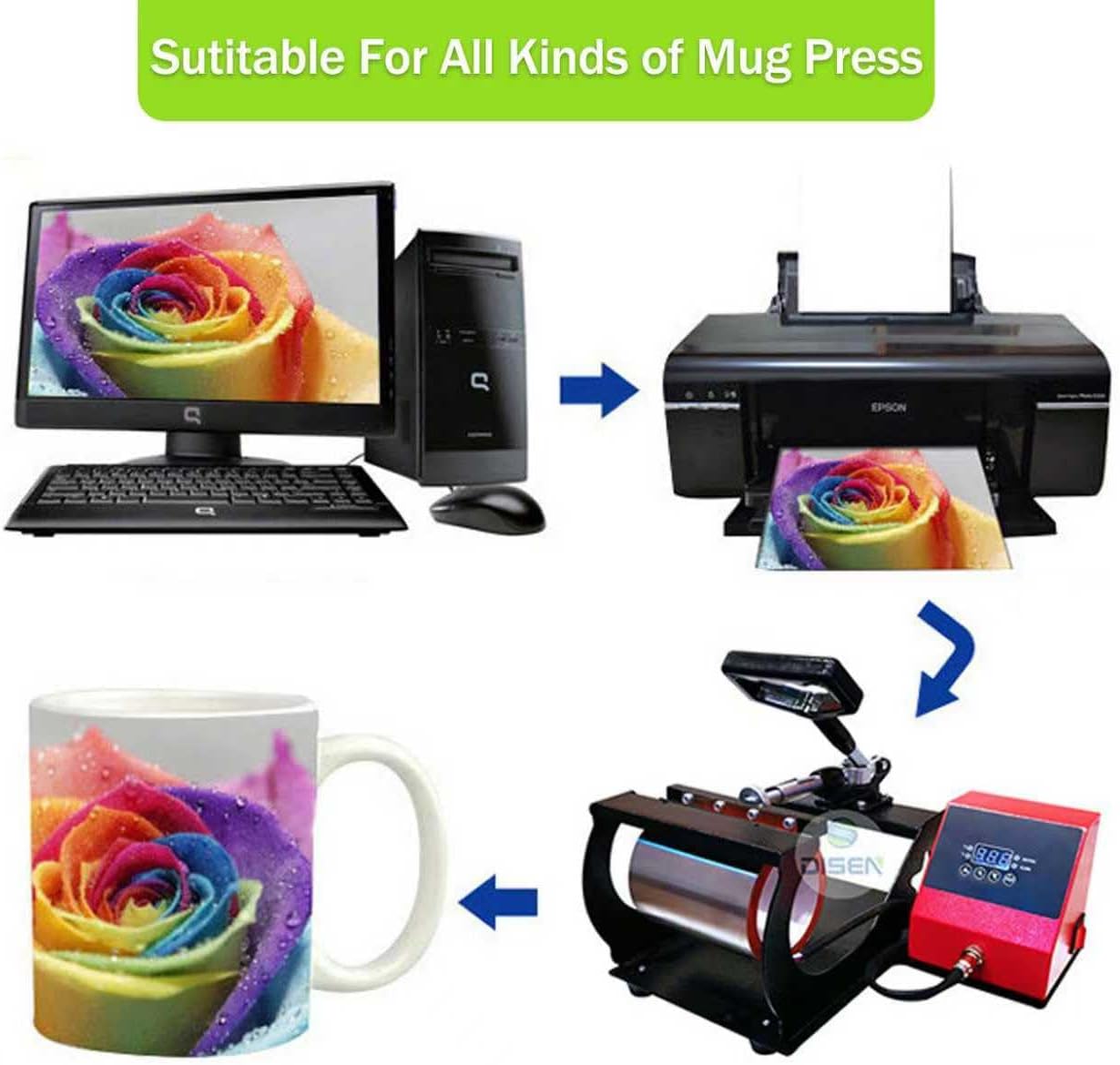 【Support creative customization】Prefect for creating photo mugs,promotions,gifts,personal keepsake,artwork showcasing,and any creative job you may want with your wrap heat press machine.