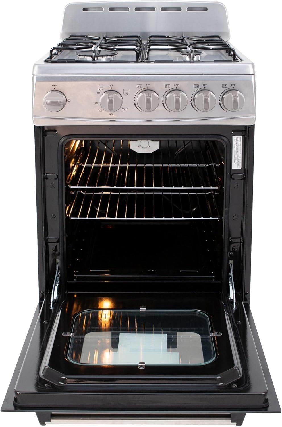 - COMPACT & SPACE-SAVING DESIGN: A 20-inch freestanding gas range, ideal for small kitchens, RVs, studio apartments, and vacation homes.