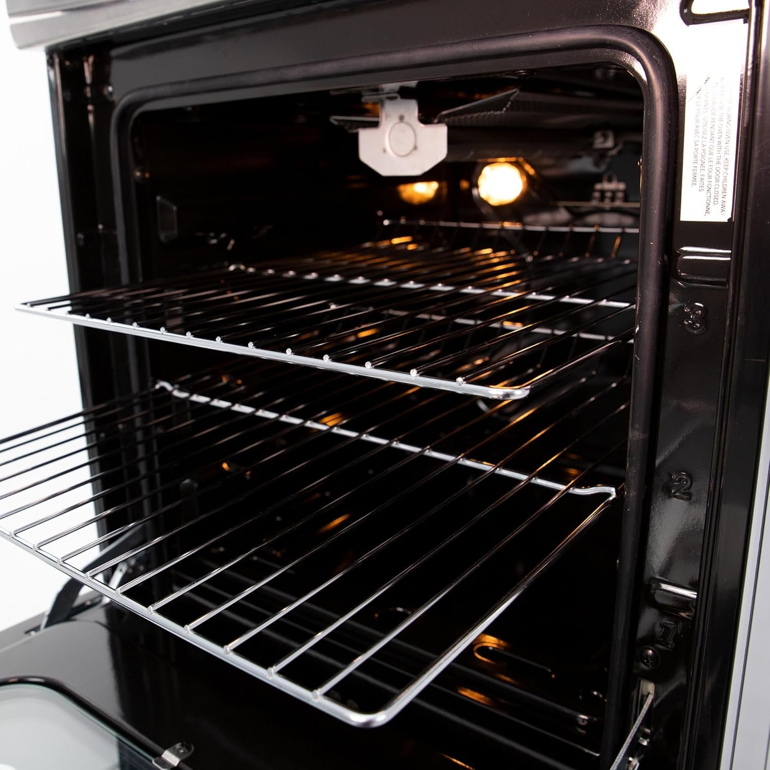 - ADDITIONAL BENEFITS: Includes a storage drawer, LP conversion kit, ADA-compliant design, and a backsplash with integrated oven vents for proper air circulation.
