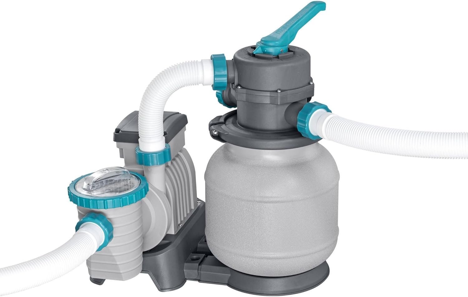• Included Accessories: Includes a 1,600 GPH sand filter pump, 250 grams of Polysphere pool filtration balls (washable, reusable sand filtration replacement), a ladder, pool cover, and a repair patch