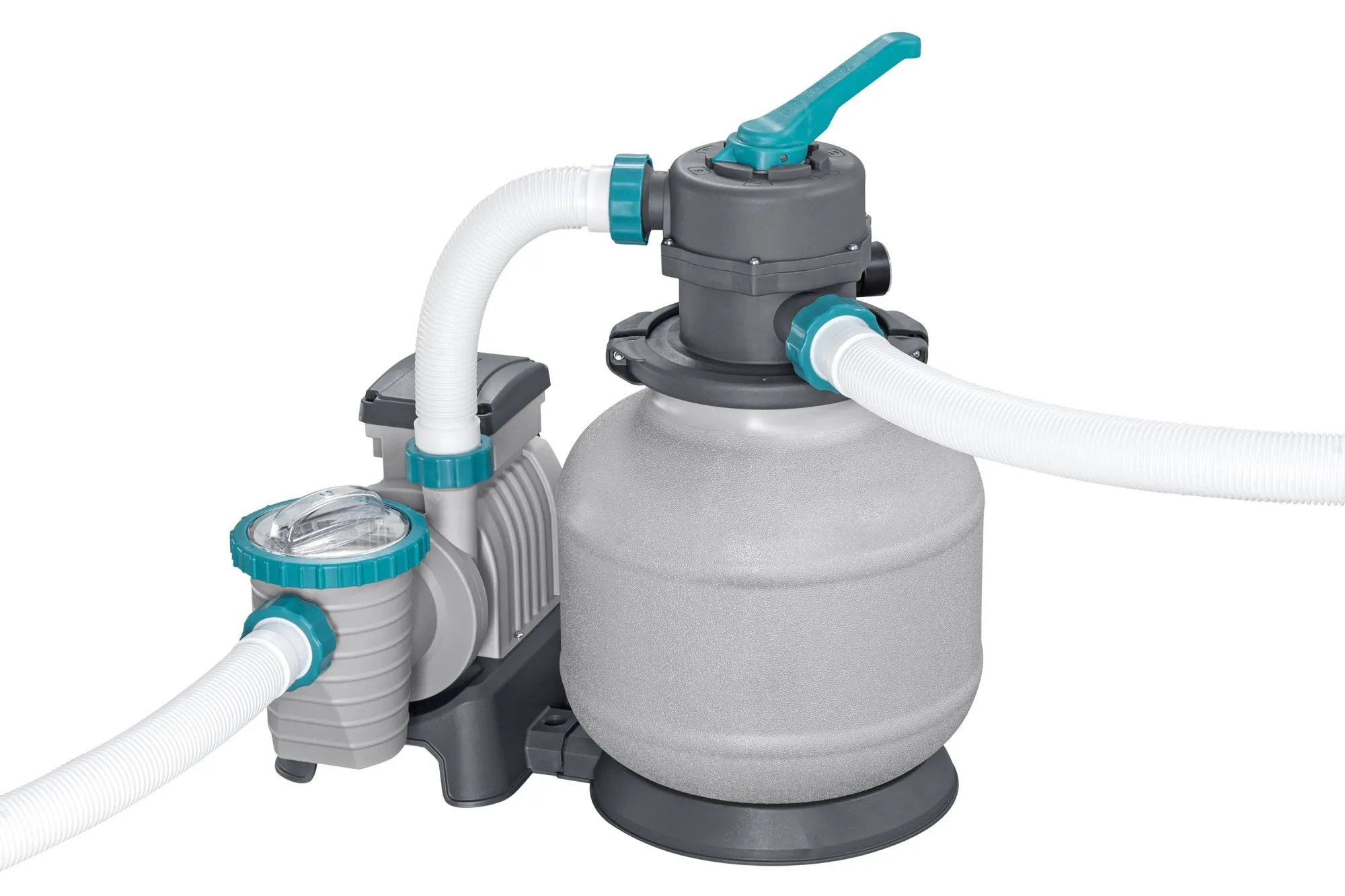 • Includes a 2,200 gal./h (8,327 L/h) sand filter pump and Polysphere™ pool filtration balls (washable, reusable sand filtration replacement)