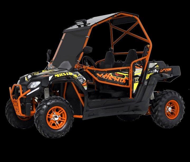 The BMS Avenger 200 EFI Sport Side By Side Utility Terrain Vehicle UTV teatures 8.9 Horsepower, and a 4 Stroke Single-cylinder 200cc Engine.