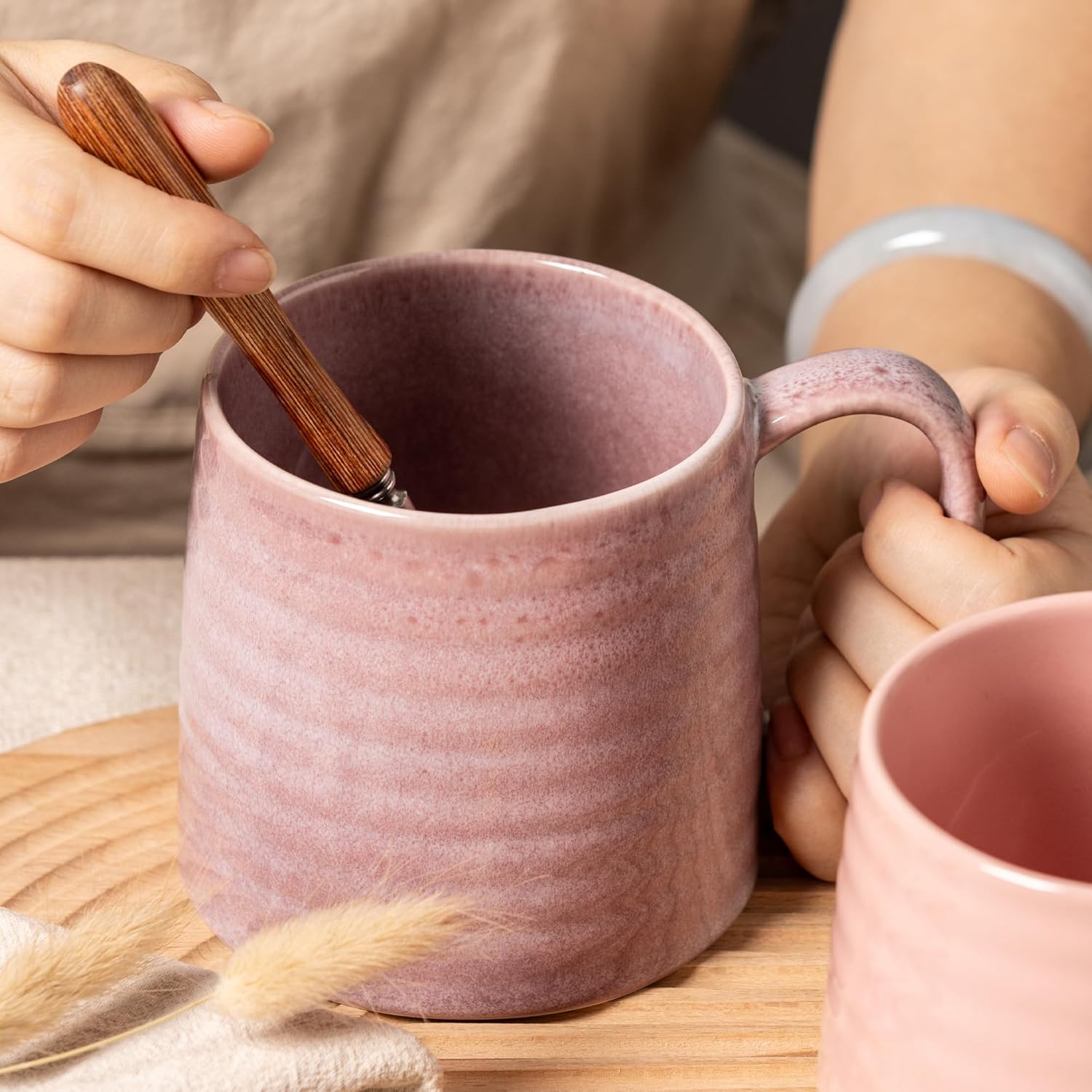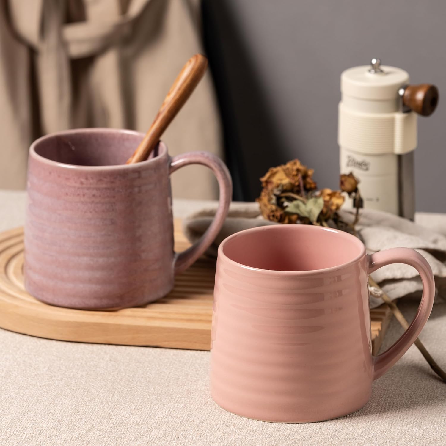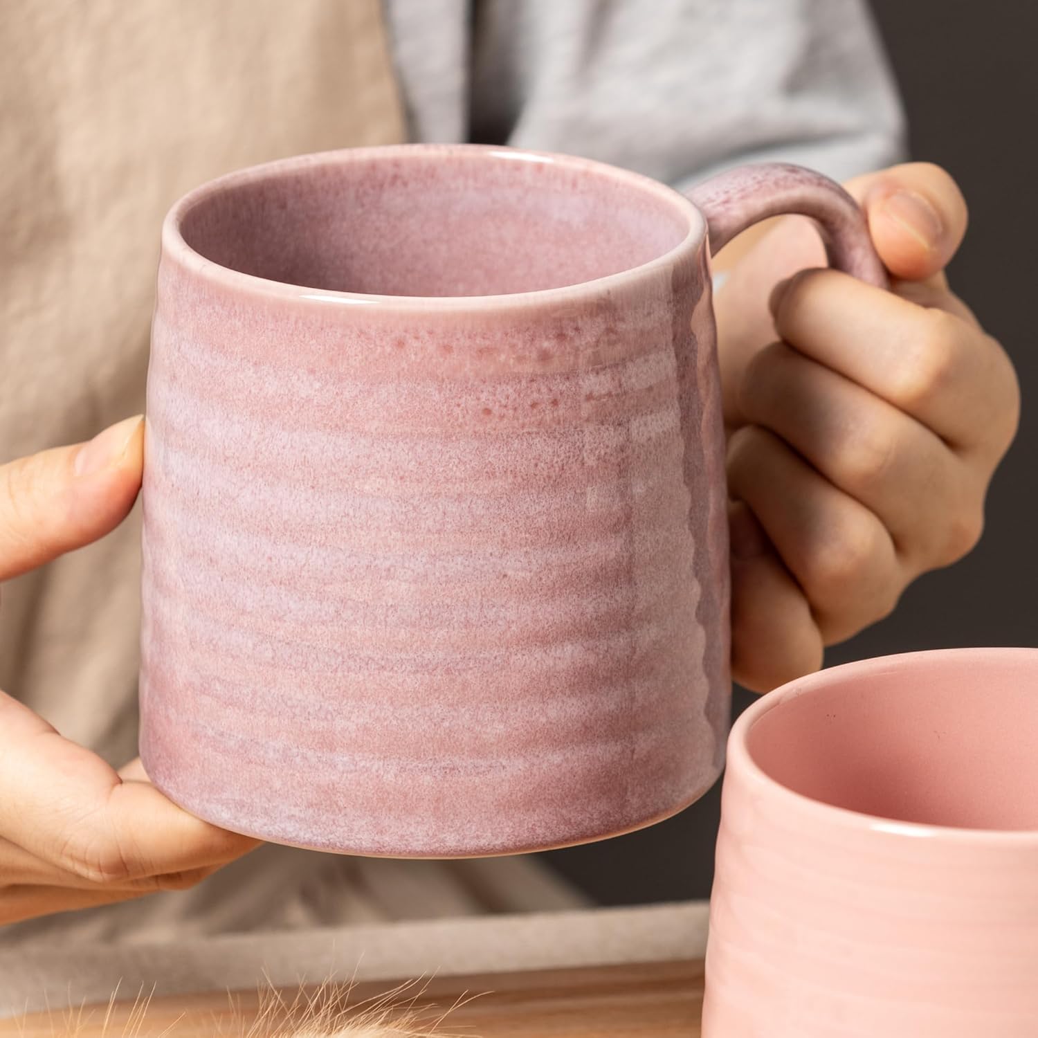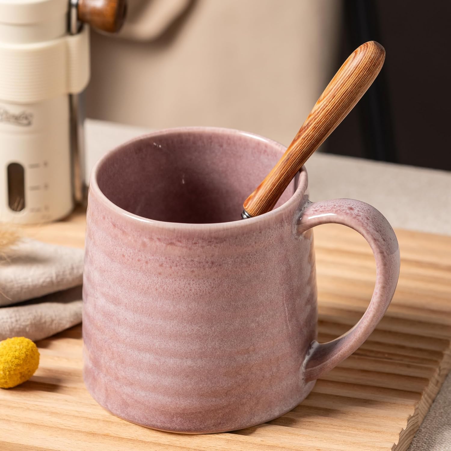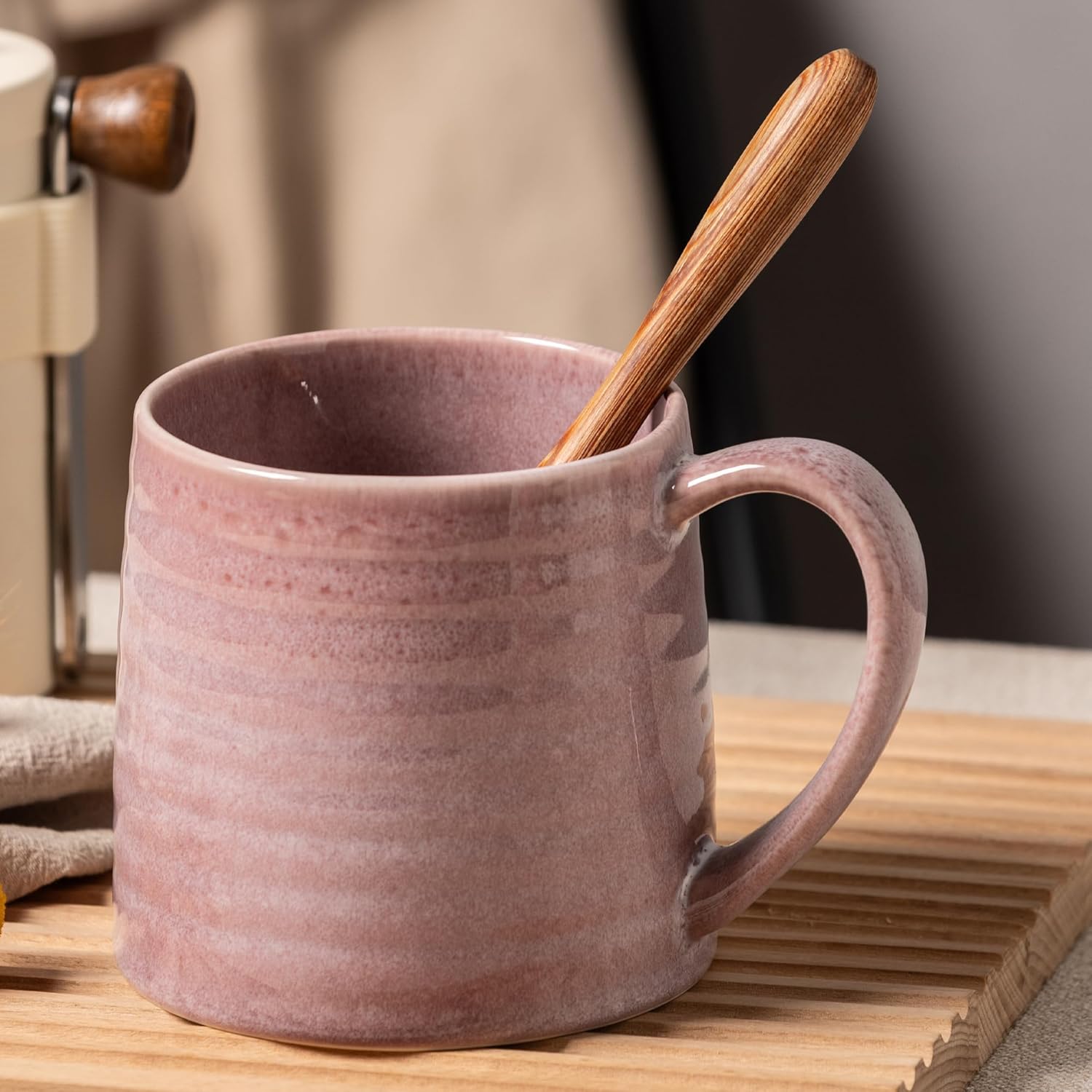 TaoTaojarvie Ceramic Coffee mugs, Large Mugs, Large Handle, Pottery Mug, Transmutation Glaze,Wide Bottom, stripe pattern.