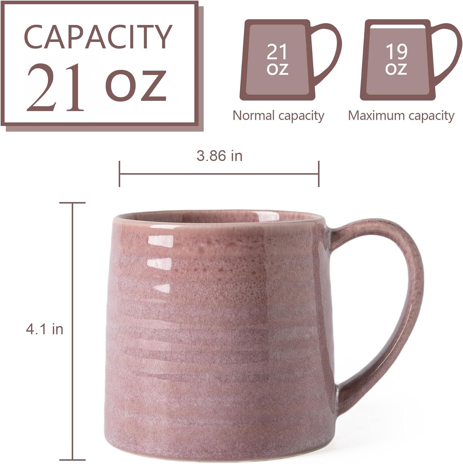 TaoTaojarvie Ceramic Coffee mugs, 22oz, Extra Large Mugs, Large Handle, Pottery Mug, Big Belly, Transmutation Glaze,stripe pattern.