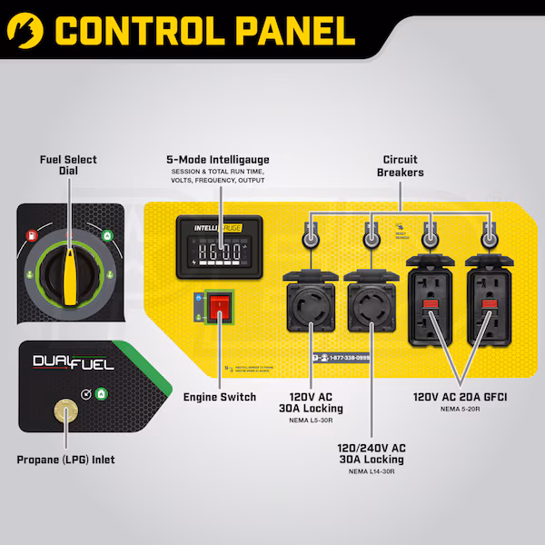 • *Note Propane Fuel Provides 6750 Running Watts / 8400 Starting Watts