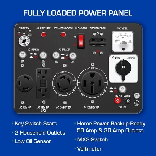 • MX2 Technology  Get the maximum power from each of the 120-Volt receptacles. Choose between operating the generator at both 120V and 240V simultaneously, or at 120V only with full power. Ideal for usage with RVs.