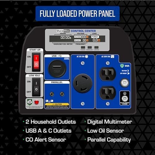 • Digital Control Center – The Digital Control Center features an LCD display showing gas level, hours run, voltage output, and load level.