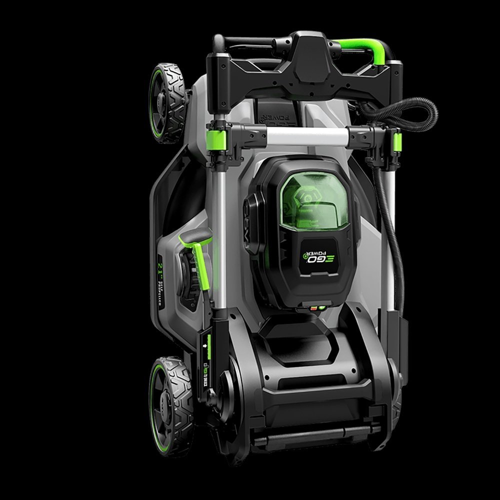 The EGO POWER+ 21” Self-Propelled Mower delivers the torque of gas without the noise, fuss, or fumes. This cordless lawn mower delivers up to 60 minutes of runtime on a single charge with the recommended 56V 7.5Ah ARC Lithium™ battery (available separately). Easily adjust the variable speed self-propel from .9 to 3.1 MPH. The electric lawn mower delivers precision cutting across six cutting height positions from 1.5 to 4 inches, adjustable with one hand. Three-in-one functionality delivers your choice of mulching, side discharge, or bagging your grass clippings; an easy-access two-bushel grass collection bag is included. This self-propelled lawn mower includes bright LED lights for added visibility when mowing at dawn or dusk, and it folds flat for compact storage between cuts. Experience Power Beyond Belief™ with the EGO POWER+ 21” Self-Propelled Lawn Mower.