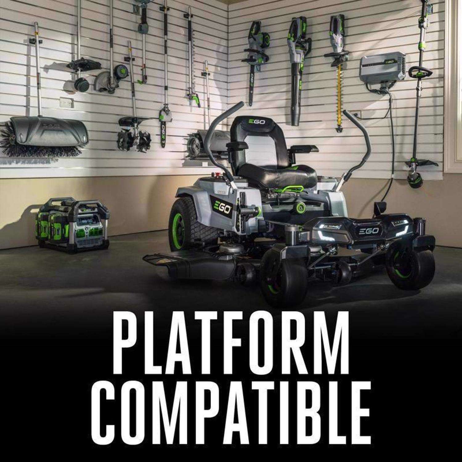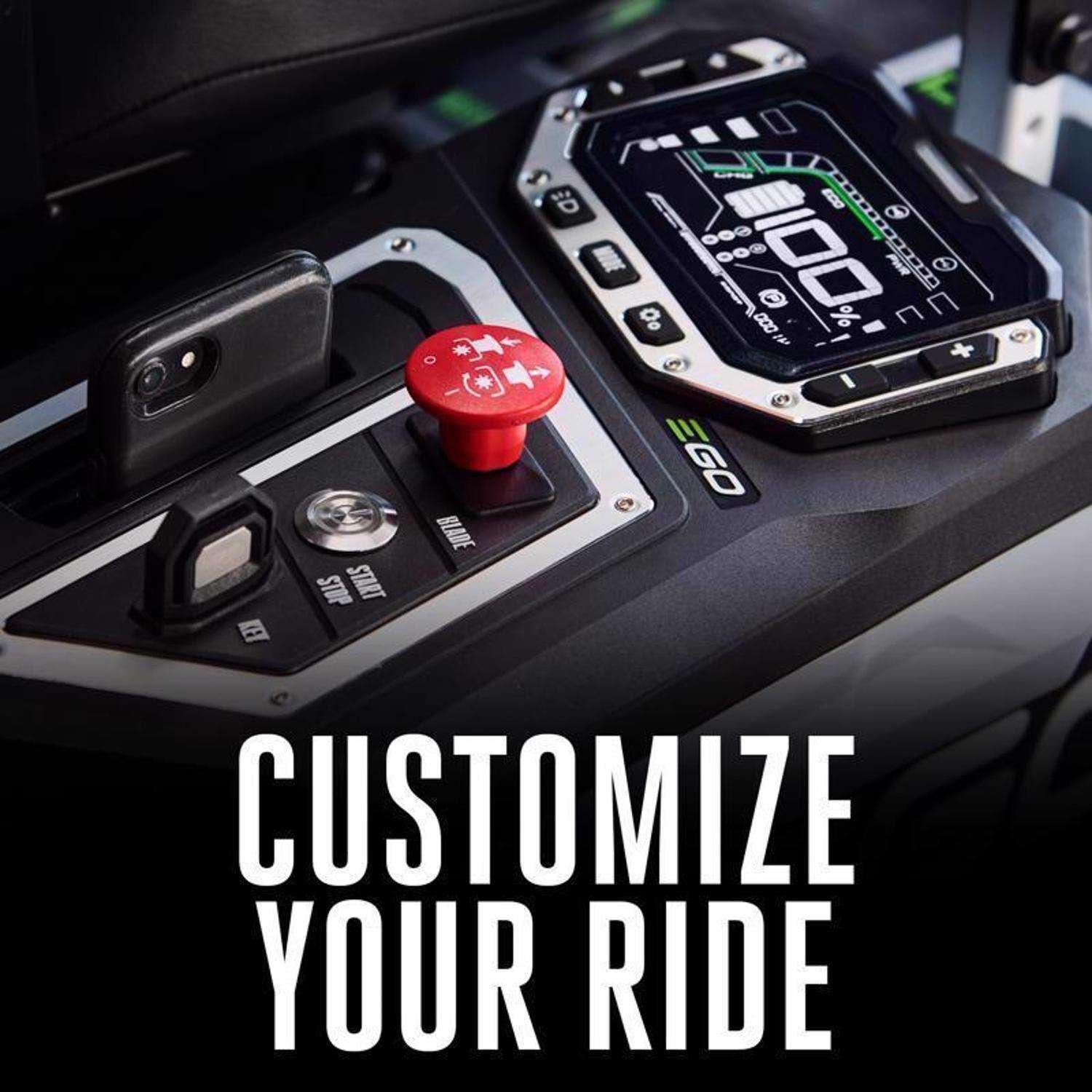 The EGO Power+ 52-inch Z6 Zero Turn Riding Mower is a ZTR like nothing else out there. Featuring Peak Power+ technology, it combines the power of up to 6 EGO 56V ARC Lithium Batteries, the same battery technology powering all EGO products, making it the World’s First Platform Compatible Rider. Engineered with 5 independent brushless motors to deliver 25 horsepower, equivalent to a gas engine, in cutting and driving power. Built with a 52-in. 10-gauge fabricated steel deck and reaching a top speed of 8 MPH, this new ZTR allows you to cover more ground, faster. Cut up to 4-acres on a single charge with six included EGO 12.0Ah 56V ARC Lithium batteries. Go even further by adding more batteries to cut 5, 6, 7 or as many acres as needed unlike any other battery-powered ZTR in the market. The Industry’s Fastest Charger fully charges 6 x 12.0Ah in just 4 hours, up to 4x faster than competitors. The adjustable seat suspension guarantees a smooth ride. Customize the mowing experience with an LCD interface featuring 3 driving modes: Control, Standard, and Sport that can be accessed with the simple touch of a finger. Premium features like LED lights, USB charging port and Bluetooth come standard to make the experience unlike any other ZTR. Built for durability, the mower, batteries and charger are all backed by a 5 year warranty. Experience zero-turn mowing like never before with the all-new EGO Power+ 52-in. Z6 Zero Turn Riding Mower. Power Like No Other.