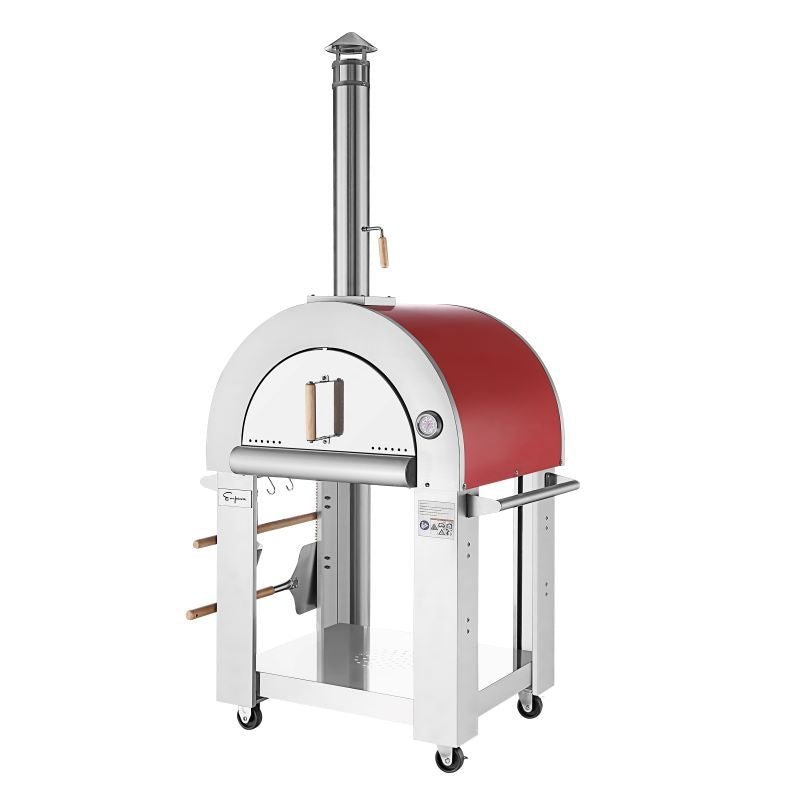 Empava PG06 Outdoor Wood Fired Pizza Oven Stainless Steel Red with Wheels and Accessories-52492