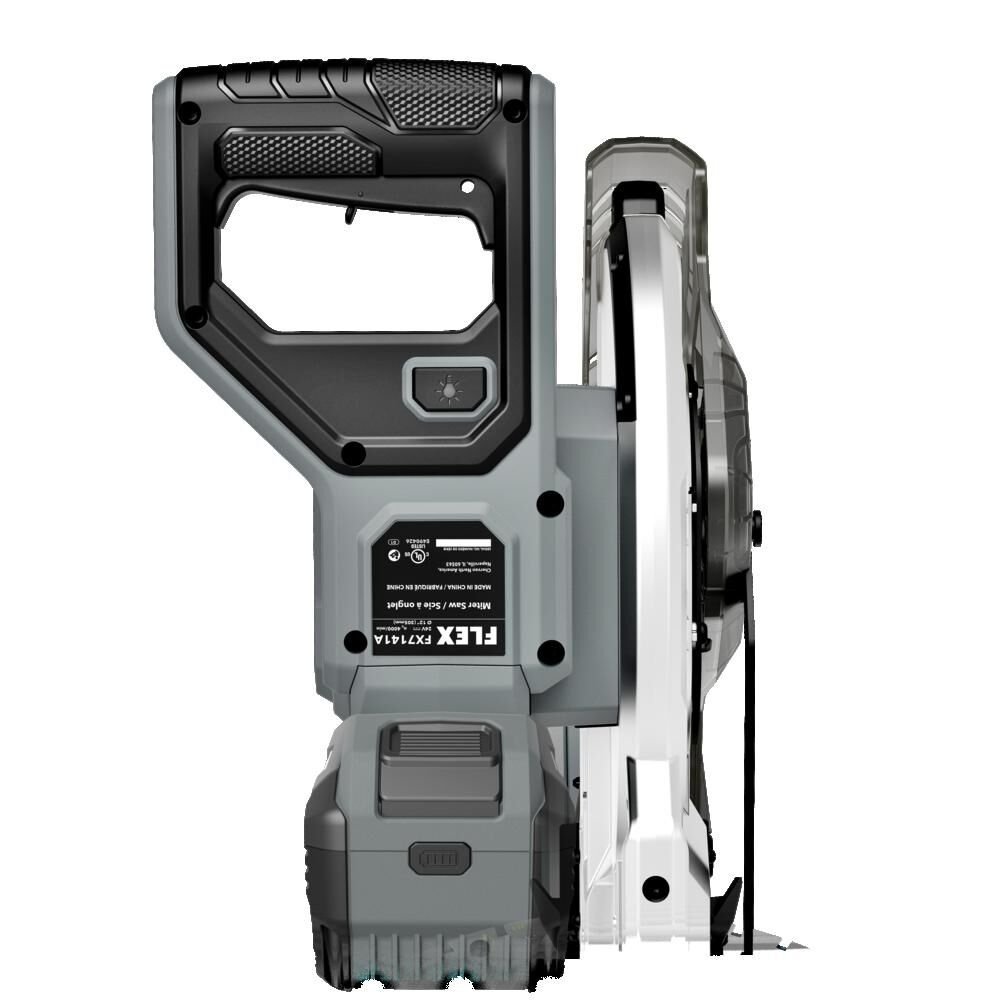Brand NameFLEXAssembled Weight (lbs)63.933Charger IncludedNoCountry of OriginChinaMFG Part # (OEM)FX7141A-ZNumber of Batteries Included0Package Contents(1) 12” Miter Saw[FX7141A]; (1) Dust Bag; (1) Vacuum Adapter; (1) Material Clamp; (1) Blade Change WrenchPackage Depth21.57Package Height20.71Package Weight68.343Product ConditionNewRestrictionsCA Prop 65UPC195532300466Warranty TypeLifetime against Manufacturer’s Defects