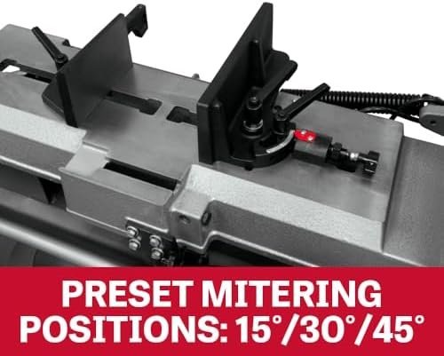 - Toolless quick lock vise with preset mitering positions at 15, 30, and 45 degrees