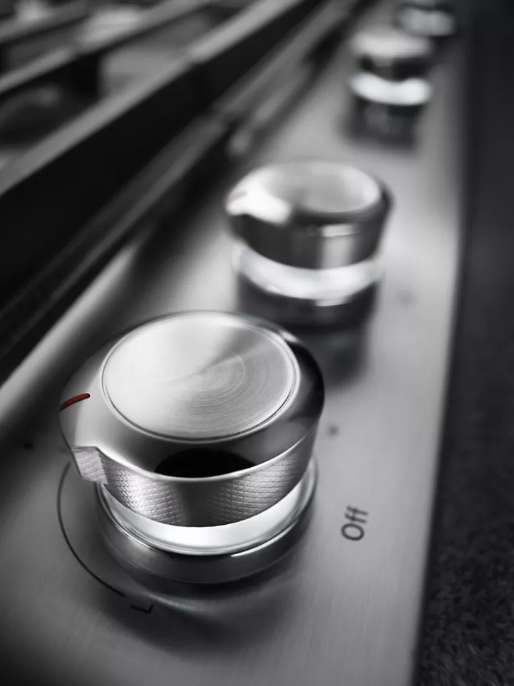 Five burners and a removable griddle give this 36-inch gas cooktop the power and versatility challenging recipes demand. The 20,000 BTU Professional Dual Ring Burner is among the most powerful in the industry, and our innovative Even-Heat™ Torch Burner provides even coverage to ensure proper heating without scorching. Multi-Finish Knobs and the scratch-resistant CookShield Finish help protect the surface against stains that may occur with high-temperature cooking.