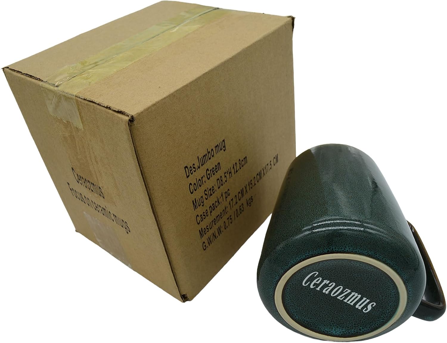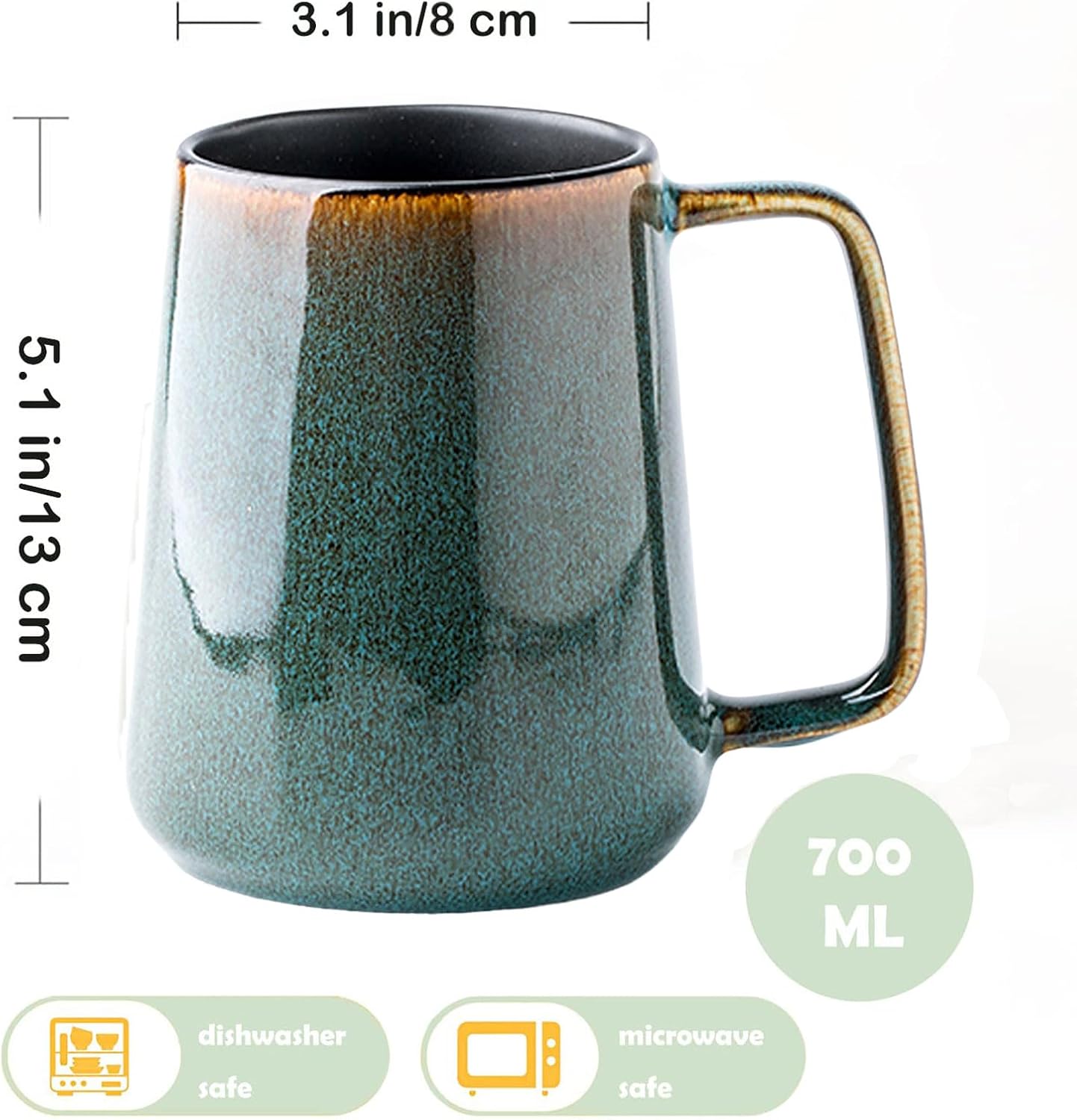 Large Ceramics Coffee Mugs,24 oz,Large Handle Design,Extra Large Tea and Coffee Cup for Office and Home,Microwave and Dishwasher Safe(Color:24 oz green)