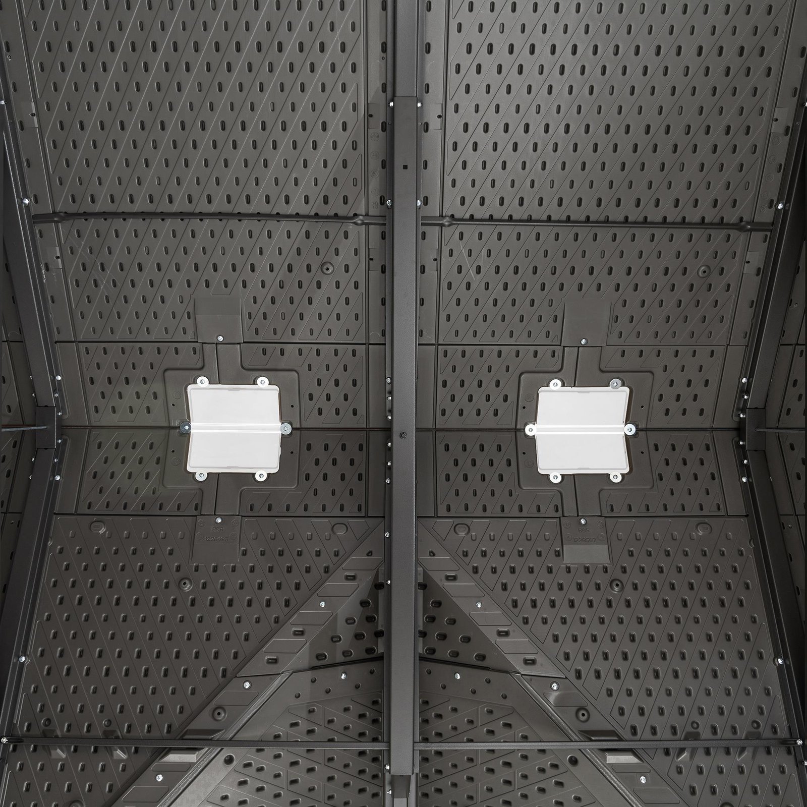 One of the best things about this shed is how easy it is to use. The centralized doors open wide, giving you quick and convenient access to all your stored items. Inside, you’ll find a customizable shelf system that lets you organize your gear exactly the way you want.