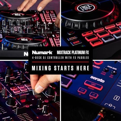 Numark Mixtrack Platinum FX Serato DJ Controller with Jog Wheel Displays, 4 Decks, Mixer, Effects Paddles and (Audio Interface)-67292