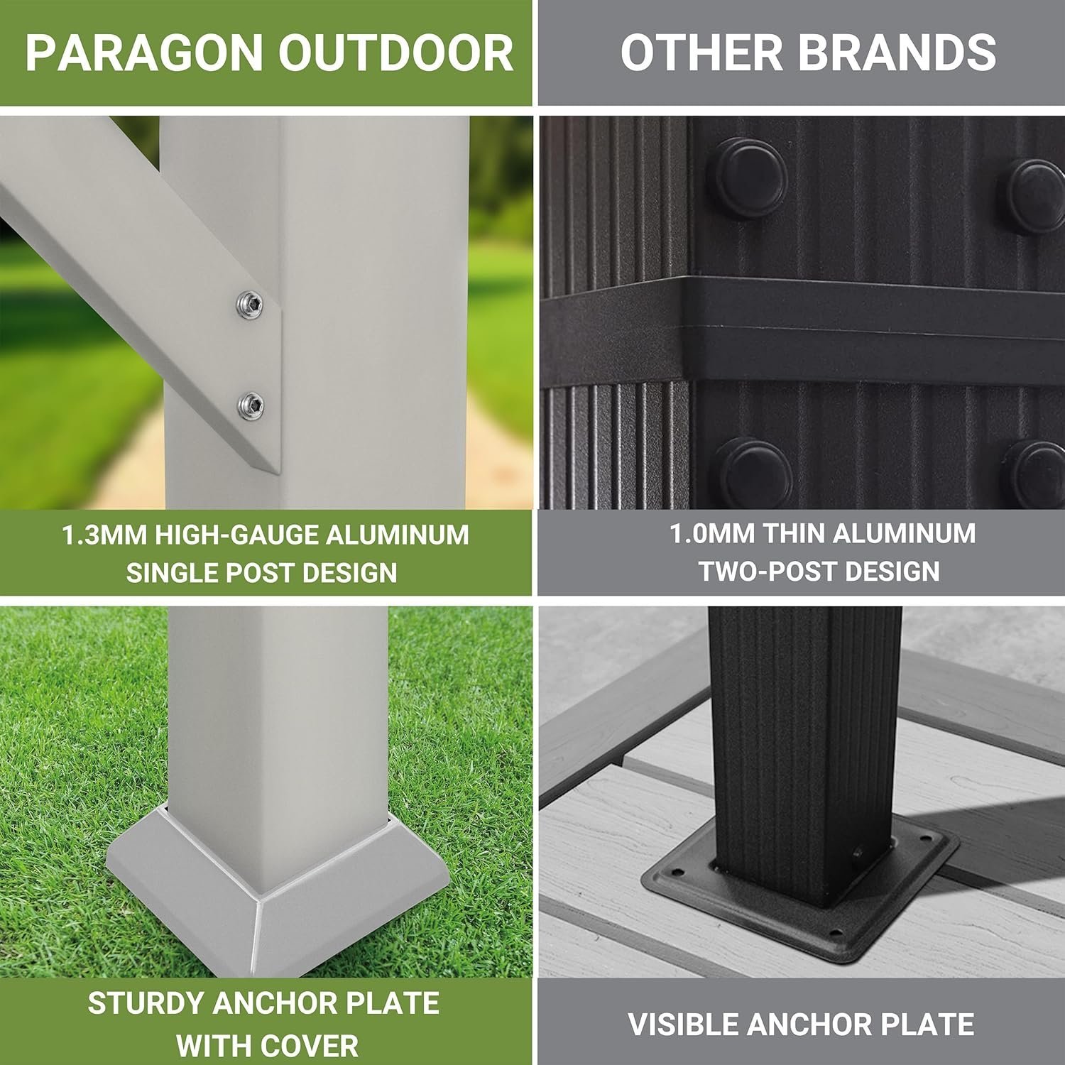 - QUALITY MATERIALS: The Florence Pergola is built to last. Compared to our competition our aluminum is 20% thicker, our canopy is 8x heavier, and our warranty is 3x longer. Made of heavy-gauge aluminum, the rust-resistant frame will guarantee stability and durability for year-round use for many years to come.
