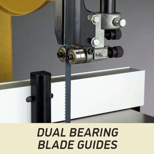 - Durable micro-adjustable dual bearing blade guide system above and below the table for close blade control with less friction