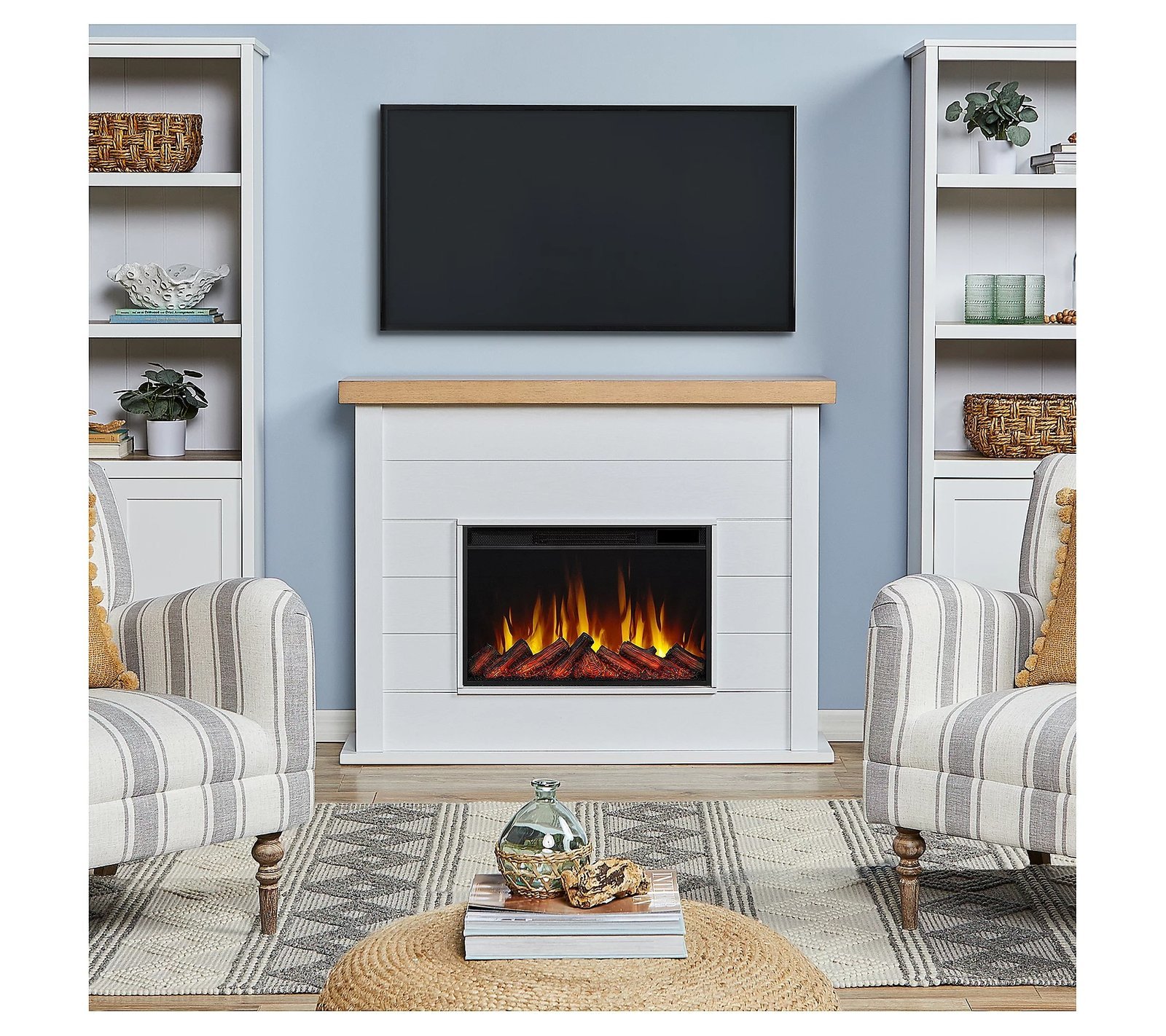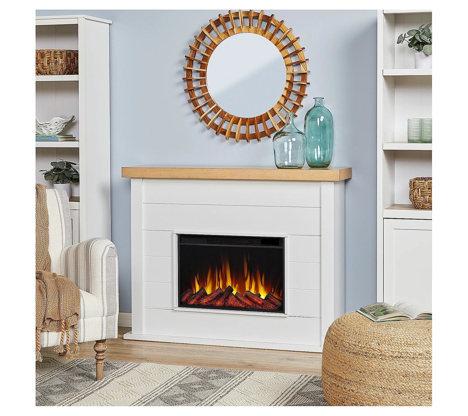 - Includes 13056E mantel, electric firebox, remote control with battery, 6 power cord with lay-flat plug, anti-topple safety device and hardware