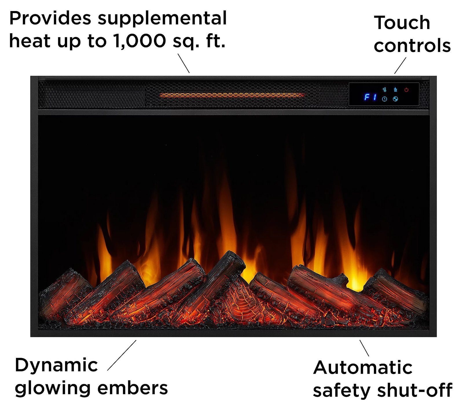 Welcome your guests with the warmth and allure of this electric fireplace boasting adjustable colors and heat to suit your setting. From Real Flame.