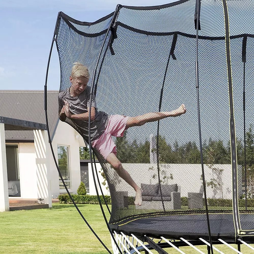 Encourage your kids to spend more time outdoors with the Springfree® Trampoline 8’ Compact Round Trampoline™ with Safety Enclosure. This spring-less trampoline provides a safe option for kids to stay active with a FlexiNet Enclosure that prevents awkward falls. The hidden frame design also adds a layer of safety by preventing injuries that would otherwise occur from landing on an exposed frame. The flexible composite rods efficiently absorb impact and bounce to provide kids with countless hours of jumping entertainment. Getting your kids to play outside will be a breeze with the Springfree® Trampoline 8’ Compact Round Trampoline™.