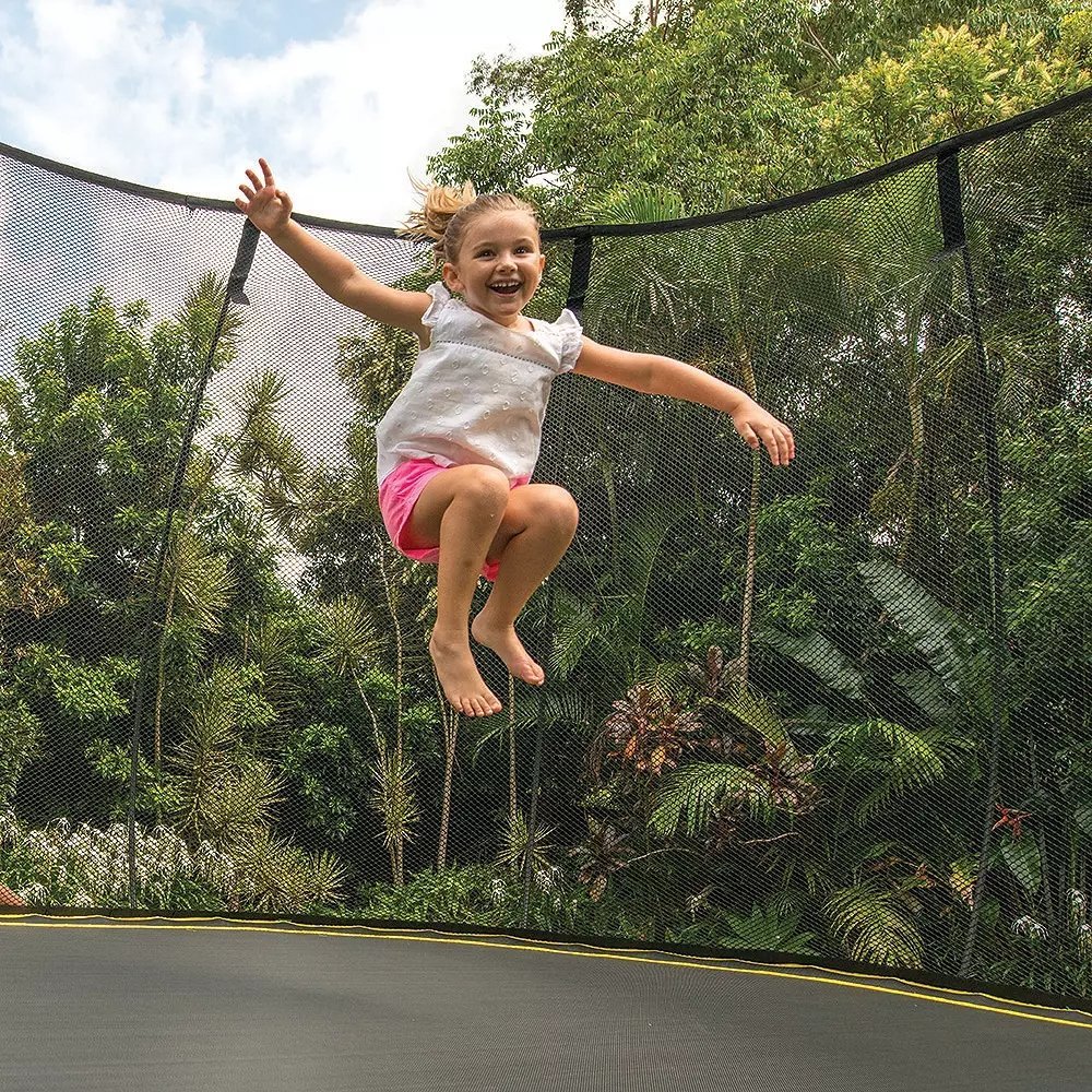 - Spring-less 8’ area is the equivalent of 10’ on a trampoline with springs
