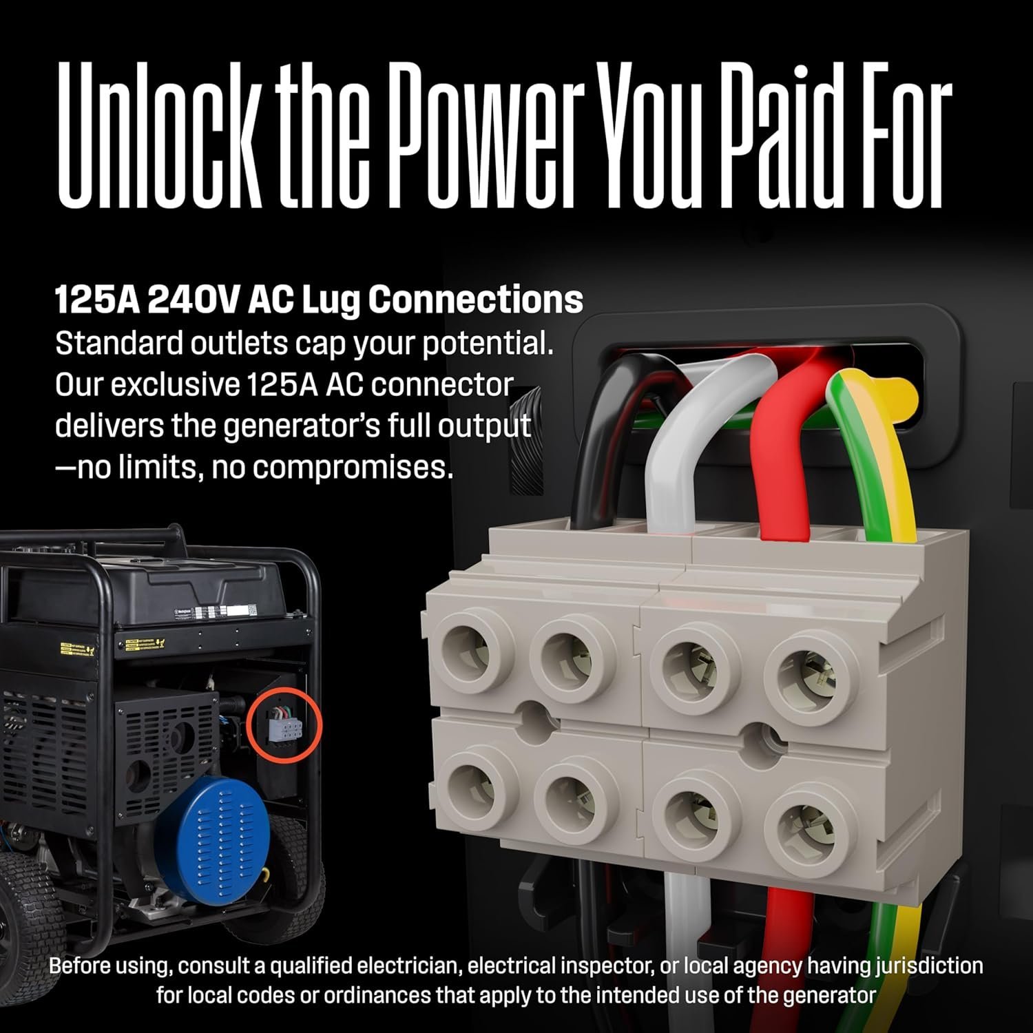 - MAX POWER OPTION: With high output designed for easy whole-home backup, our exclusive 125A 240V AC terminal block lets a licensed electrician hardwire the generator directly to your home for full power delivery without the limits of cords or outlets