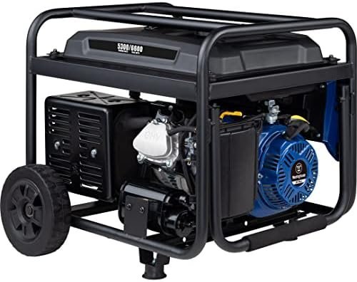 - 5300 Running Watts and 6600 Peak Watts; Recoil Start; 4.7 Gallon Fuel Tank with Fuel Gauge; Up to 14.5 Hours of Run Time Per Tank with 120/240V Volt Selector Switch