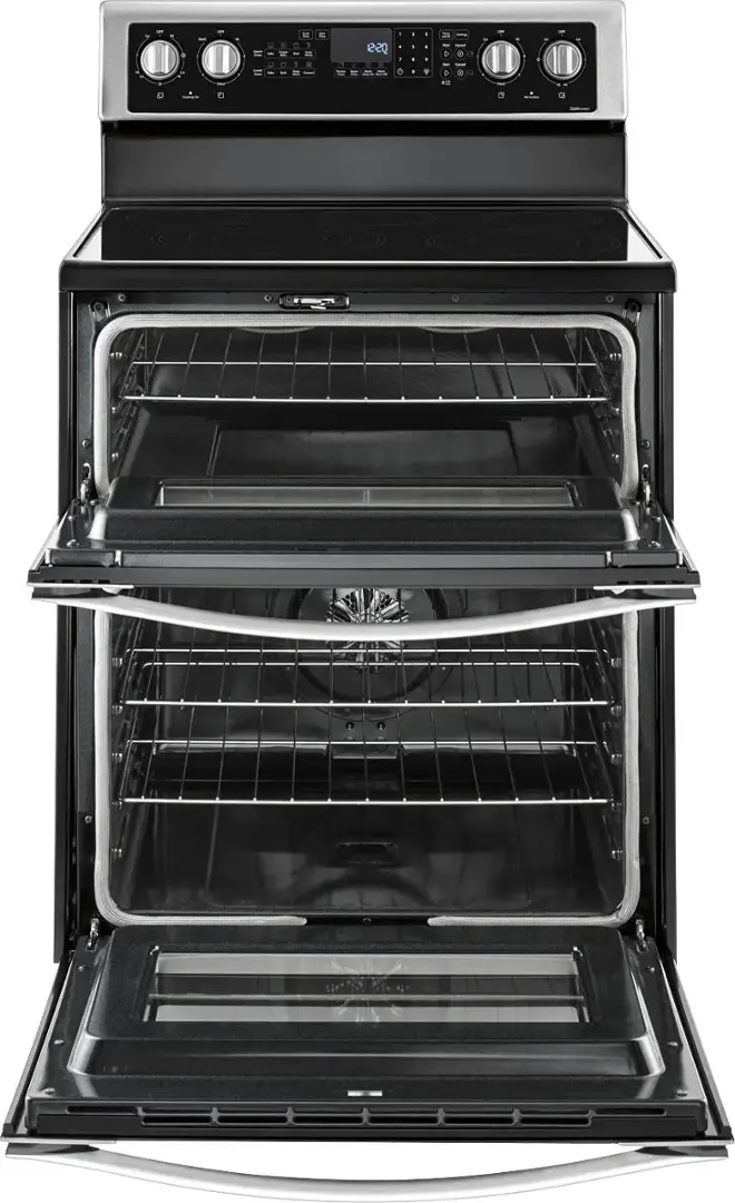 Designed with convenience in mind, this Whirlpool range includes easy-to-use digital controls, self-cleaning options, and a sleek stainless steel finish that resists fingerprints. Whether you’re cooking a quick weeknight meal or hosting a big gathering, this double oven range delivers performance and style.